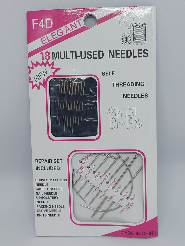 Self Threading Needles. Repair Set Included: Curved Mattress Needle, Carpet Needle, Sail Needle, Upholstery Needle, Packing Needle, Glove Needle, Knits Needle.